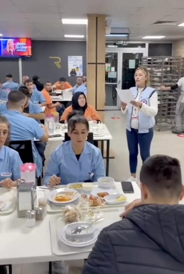 BURSA, 18 Aralık 2025 Perşembe, 23:27Fabrikada örgütlü işçiler, öğle yemeği sırasında yemekhanelerde masalara çatal ve kaşıklarını vurarak ritim tutup sloganlar atarak taleplerini dile getirdi. Ortak açıklamada işçiler, geçim sıkıntısına ve enflasyonun altında kalan zam tekliflerine "evet" demeyeceklerini, haklarını alana kadar mücadelelerini sürdüreceklerini vurguladı.