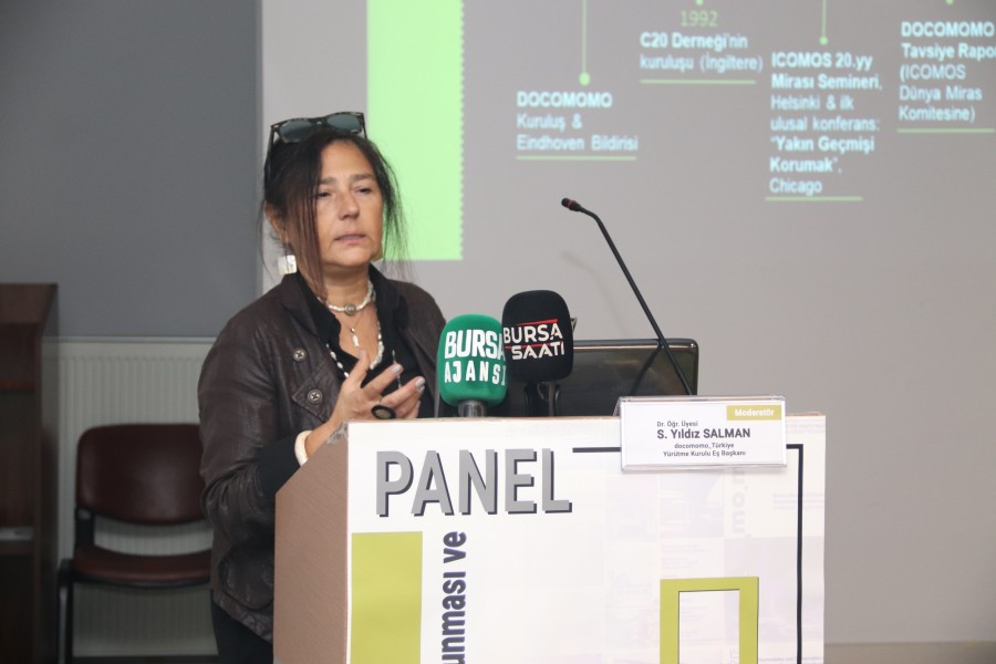 Alanında uzman akademisyenleri ve araştırmacıları bir araya getirerek, Türkiye'de modern mimarlığın korunmasına dair güncel yaklaşımlar ile Bursa'nın kent hafızasındaki dönüşümünün tartışıldığı panelin açılış konuşmasını yapan TMMOB Mimarlar Odası Bursa Şubesi Yönetim Kurulu Başkanı Şirin Rodoplu Şimşek, "Mimarlık Haftası Etkinlikleri kapsamında gerçekleştirdiğimiz panel, modern mimarlık mirasının korunması, kent kültürünün ve tarihsel sürekliliğin gelecek kuşaklara aktarılması açısından son derece önemlidir. Mimarlar Odası Bursa Şubesi olarak düzenlediğimiz bu panel ile 20. yüzyıl Bursa mimarlığını yeniden değerlendirmek, nitelikli yapıların korunmasına dair toplumsal ve mesleki farkındalık yaratmak istedik. DOCOMOMO'nun küresel ölçekteki çalışmalarına yerel katkı sunmak, kentimizin modern mimarlık mirasını görünür kılmak ve bu yapıları koruma politikalarına dahil etmek bizim için önemli bir sorumluluktur. Panele katkılarından dolayı tüm katılımcılara ve konuşmacılarımıza teşekkür ediyoruz" dedi.