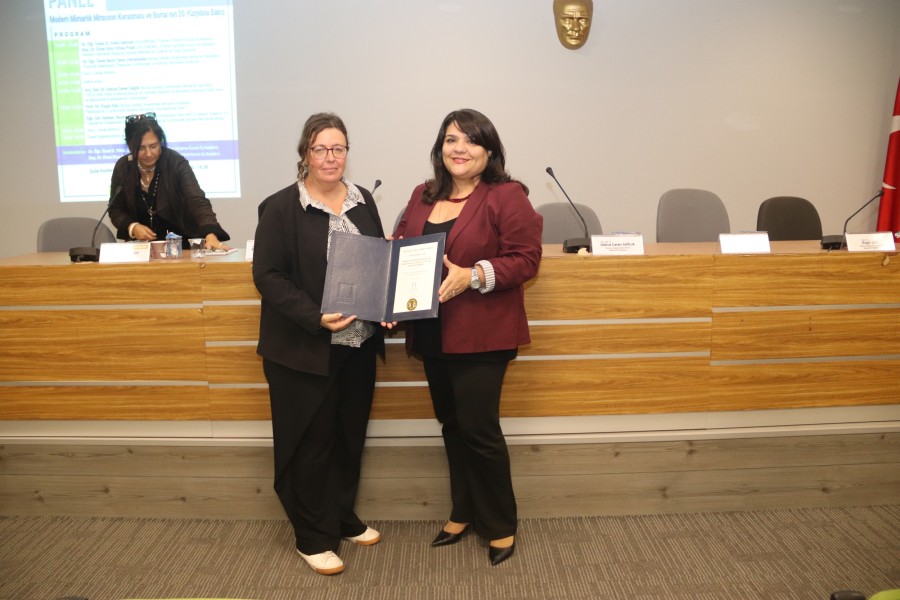 BURSA, 13 Ekim 2025 Pazartesi, 10:30"Modern Mimarlık Mirasının Korunması ve Bursa'nın 20. Yüzyılına Bakış" başlığı altında düzenlenen panele Mimarlar Odası Bursa Şubesi Yönetim Kurulu Başkanı Şirin Rodoplu Şimşek, Docomomo_Türkiye Yürütme Kurulu Eş Başkanları Doç. Dr. Elvan Ebru Omay Polat ve Dr. Öğr. Üyesi S. Yıldız Salman, Bursa Uludağ Üniversitesi Mimarlık Fakültesi öğretim üyesi Prof. Dr. Özgür Ediz, Bursa Teknik Üniversitesi Mimarlık Fakültesi Dr. Öğr. Üyesi Nazlı Taraz Varışlıaslan, Bursa Uludağ Üniversitesi Mimarlık Fakültesi Arş. Gör. Dr. Hatice Ceren Sağlık, İstanbul Topkapı Üniversitesi Plato MYO İç Mekan Tasarımı Programı Öğr. Gör. Gürkan Okumuş, Bursa Teknik Üniversitesi Arş. Gör. Filiz Ayaz, Bursa Teknik Üniversitesi Dr. Öğr. Üyesi Nurhilal Burak, Bursa Teknik Üniversitesi Dr. Öğr. Üyesi Tuba Sarı, Bursa Teknik Üniversitesi Dr. Öğr. Üyesi Aylin Aras, Mimarlar Odası Bursa Şubesi üyeleri ve öğrenciler katıldı.