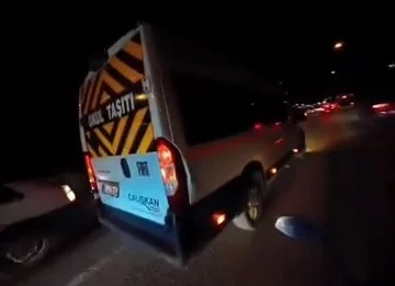 Çarpışmanın ardından trafikte ani yavaşlama yaşandı. Bu sırada aynı güzergahta ilerleyen motosiklet sürücüsü, önündeki servis aracına çarpmamak için ani fren yaptı.