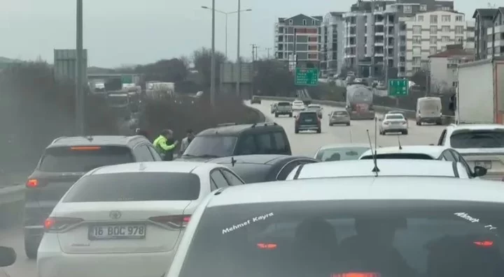 Bursa'da otobanda tehlike! Ters yöne giren araç trafiği kilitledi