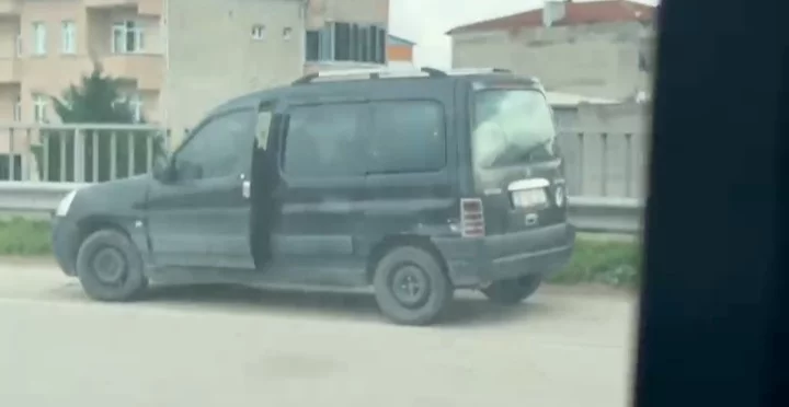 Karşı yönden kendilerine doğru gelen aracı fark eden sürücüler şaşkınlık yaşadı.