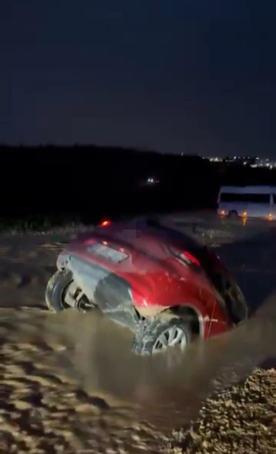 BURSA, 07 Ocak 2026 Çarşamba, 20:00Bursa'nın Nilüfer ilçesinde yol çalışması nedeniyle oluşan çamura giren otomobil bataklığa saplandı. Araç yarıya kadar çamura gömülürken, sürücü otomobilden son anda kurtuldu.