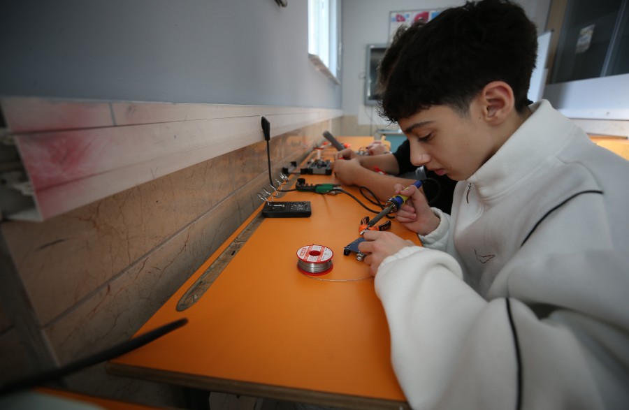 BURSA, 04 Aralık 2025 Perşembe, 11:08Nilüfer Atatürk Mesleki ve Teknik Anadolu Lisesi Saadet İğrek Endüstriyel Otomasyon Teknolojileri alanında geçen yıl, robot tasarlayıp geliştirmeye yönelik, bu konuda yetenekli ve istekli 3 öğrenciden oluşan AROTEK takımı kuruldu.