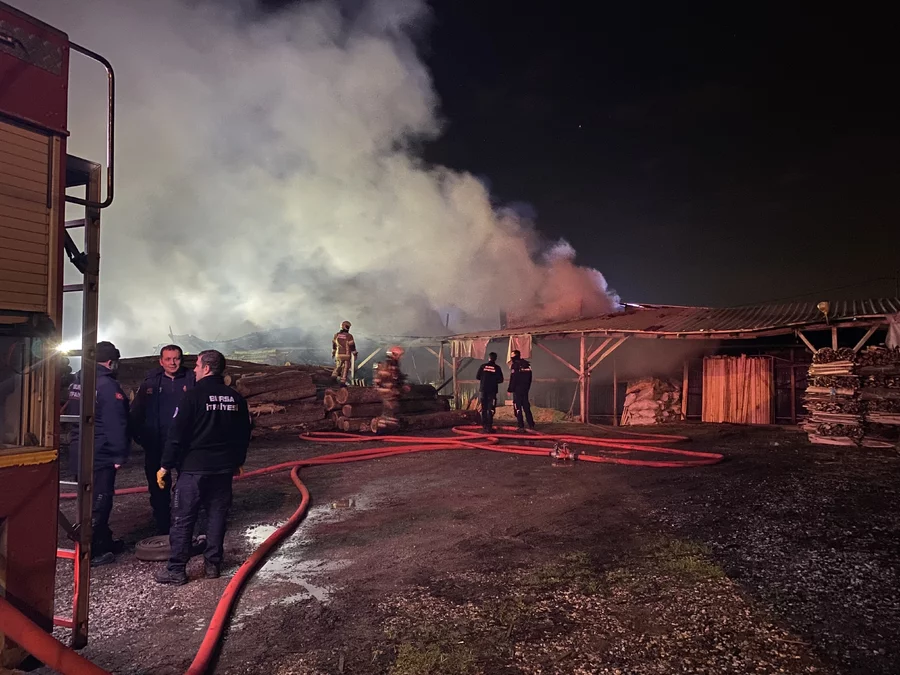 Bursa'da palet fabrikasındaki yangın kontrol altına alındı