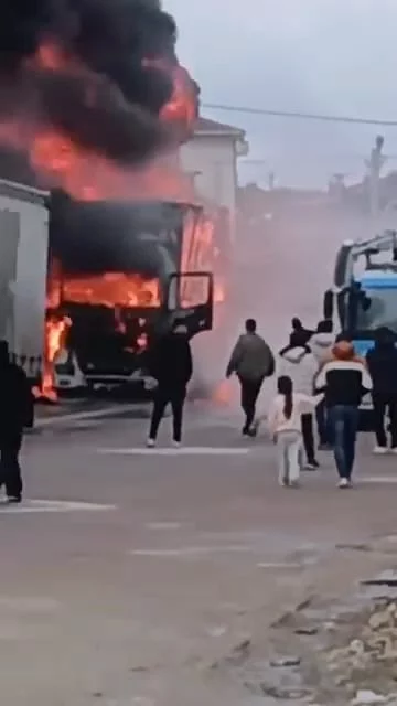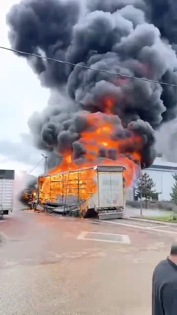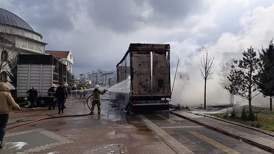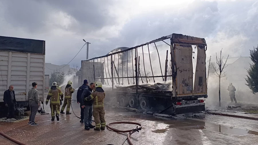 BURSA, 18 Ocak 2026 Pazar, 13:56Yangın, saat 12.30 sıralarında Mesudiye Mahallesi Meydan Sokak üzerinde meydana geldi. Edinilen bilgiye göre, park halindeki 16 BRT 373 plakalı çekiciye bağlı 16 BPA 863 plakalı dorsede yüklü bulunan süngerler henüz bilinmeyen bir nedenle yanmaya başladı.