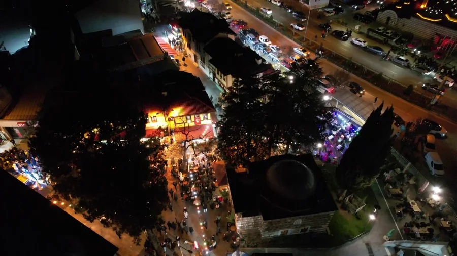 BURSA, 08 Mart 2026 Pazar, 08:00Bursa'nın Osmangazi ilçesinde bulunan tarihi Abdal Meydanı'nda her yıl Ramazan ayında yaşanan sahur yoğunluğu bu yıl da değişmedi. Tahanlı pide ve simit almak isteyen vatandaşlar gece saatlerinde meydanda uzun kuyruklar oluşturdu. Sahura kısa süre kala artan yoğunluk nedeniyle kuyruk kilometreyi aşarken, vatandaşlar dakikalarca sıra bekledi.