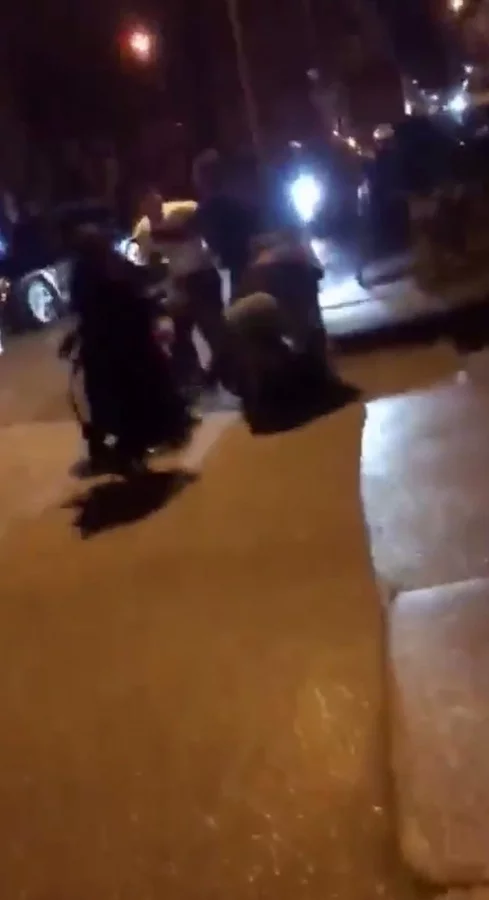 Cep telefonu kamerasına yansıyan görüntülerde, yolun sol tarafında yere düşen aile babasının darbedildiği, diğer tarafta ise anne ile grup arasında tartışma ve arbede yaşandığı anlar yer aldı.