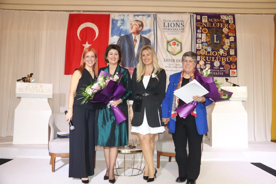 Gecenin sonunda Bursa Nilüfer Lions Kulübü Başkanı Oya Baykal, Kalbim Seninle Derneği Başkanı Sebla Pamir Güler ile BUİKAD Başkanı ve Bursa Nilüfer Lions Yönetim Kurulu Üyesi Şeyda Şençayır, Türkiye Kadın Dernekleri Federasyonu Başkanı Canan Güllü'ye çiçek ve plaket takdiminde bulundu.