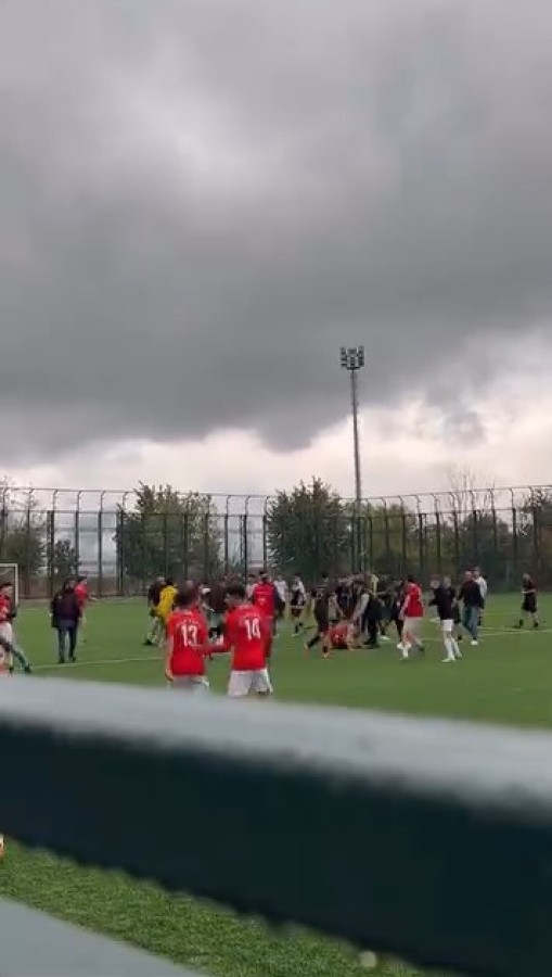 Sahada yumrukların konuştuğu kavgaya hakemler ve saha görevlileri müdahale etti.