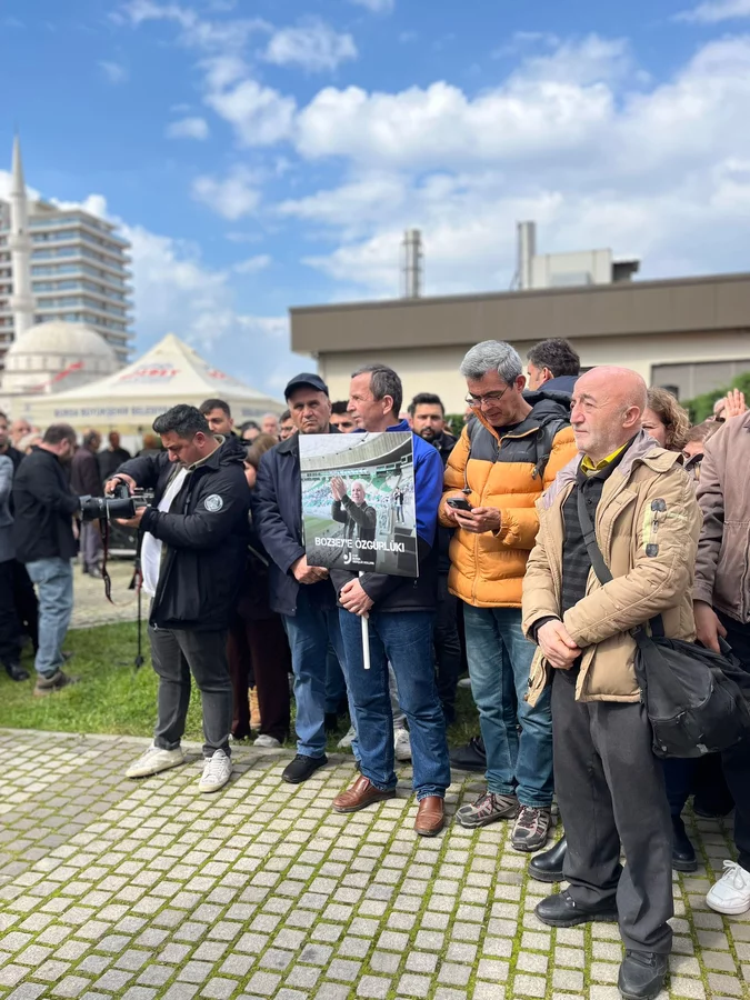 Dün Mustafa Bozbey yazan atkıları almayanlar ve Bursaspor'u kapatmaya çalışanlar, dün Bursaspor sahipliymiş gibi davrandılar; bunu hepiniz görün. Mustafa Bozbey'in emeklerinin üzerine çöktürmeyeceğiz. O yüzden sesimizi yükseleceğiz susmayacağız mücadele edeceğiz.