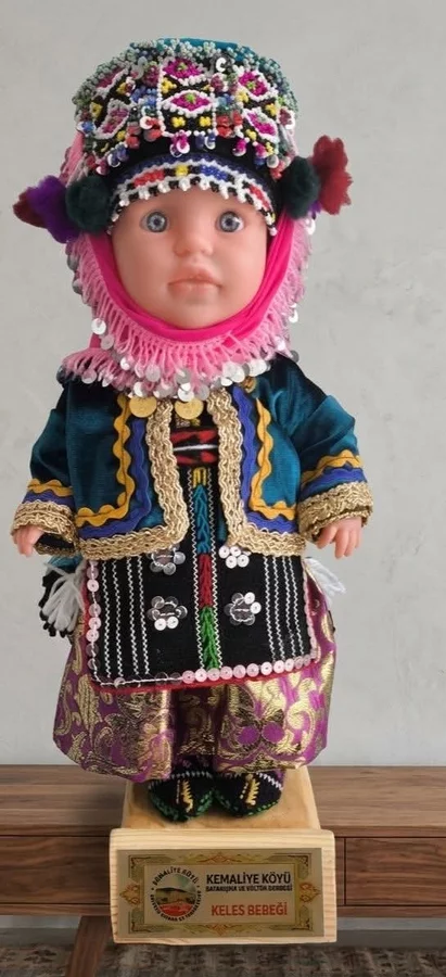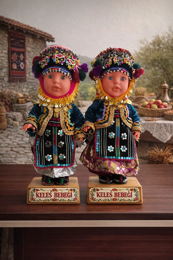 Erkek ve kadın figürleri bulunan bebekler, üç farklı boyutta hazırlanırken, yöreye özgü kıyafetlerin minyatür birebir örnekleriyle dikkat çekiyor. Kıyafetlerin, geçmişte Keles yöresinde kullanılan geleneksel giysilerin aynı iplik ve süslemelerle hazırlanması ise kültürel değeri ön plana çıkarıyor.