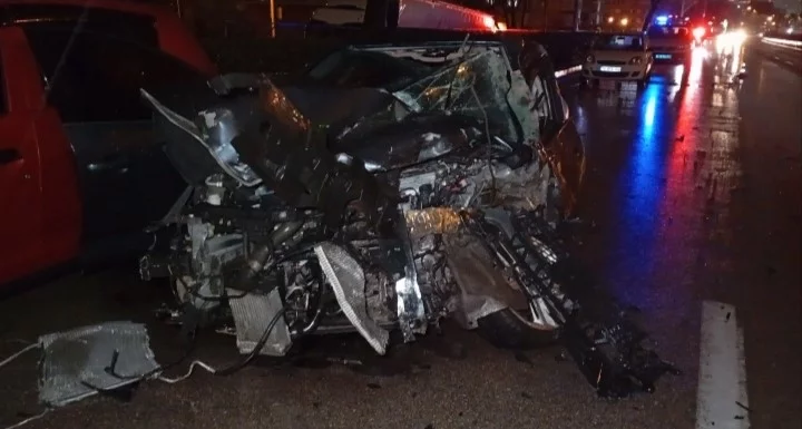 Kontrolden çıkan araç önce refüje, ardından elektrik direklerine çarparak durabildi.