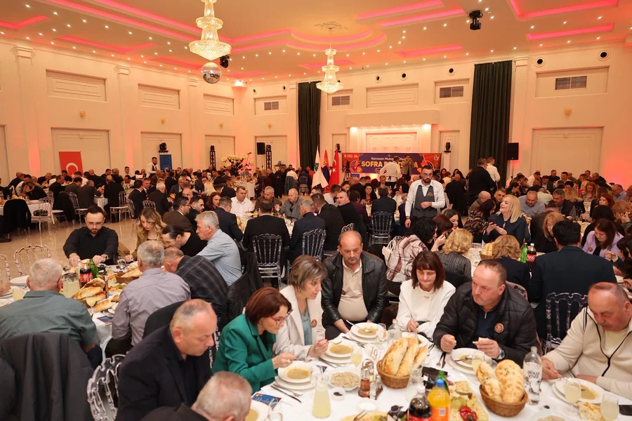 Başkan Mustafa Bozbey ve beraberindekiler, Sancak bölgesinde düzenlenen iftar programlarının son gününde Priyepolyelilerle birlikte iftar açtı. Vatandaşların yoğun ilgi gösterdiği programda, gençlerin sahnelediği yöresel halk oyunları da büyük beğeni topladı. İftar sofrasında manevi iklimi birlikte yaşamaktan son derece mutlu olduğunu belirten Başkan Bozbey, "Burada olmak bizim için sadece bir ziyaret değildir. Aynı zamanda ortak geçmişimizi ve kardeşliğimizi hatırlatan anlamlı bir buluşmadır. Sofralarımız bereketli, kalplerimiz huzur dolu olsun. Şimdiden Ramazan Bayramınızı tebrik ediyorum" diye konuştu.