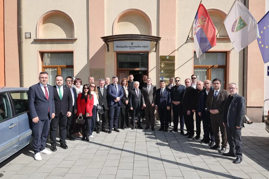 Bursa Büyükşehir Belediye Başkanı Mustafa Bozbey, Sancak bölgesinde düzenlenen Ramazan programı kapsamında Yeni Pazar'daki Boşnak Milli Konseyi Başkanı Fuad Baćićanin ile bir araya geldi. Ziyarette, CHP Bursa Milletvekili Hasan Öztürk, Sırbistan Bursa Fahri Konsolosu Zarif Alp, Bursa Bosna Sancak Derneği Başkanı Sadık Şengül, meclis üyeleri ve Balkan Rumeli Komisyonu üyeleri de yer aldı. Sırbistan'daki Boşnak toplumunun dili, kültürü ve eğitim haklarının korunması için yürüttükleri çalışmalar hakkında bilgi alan Başkan Bozbey, Boşnak kimliğinin yaşatılmasına katkı sunan faaliyetlerin önemine vurgu yaptı.