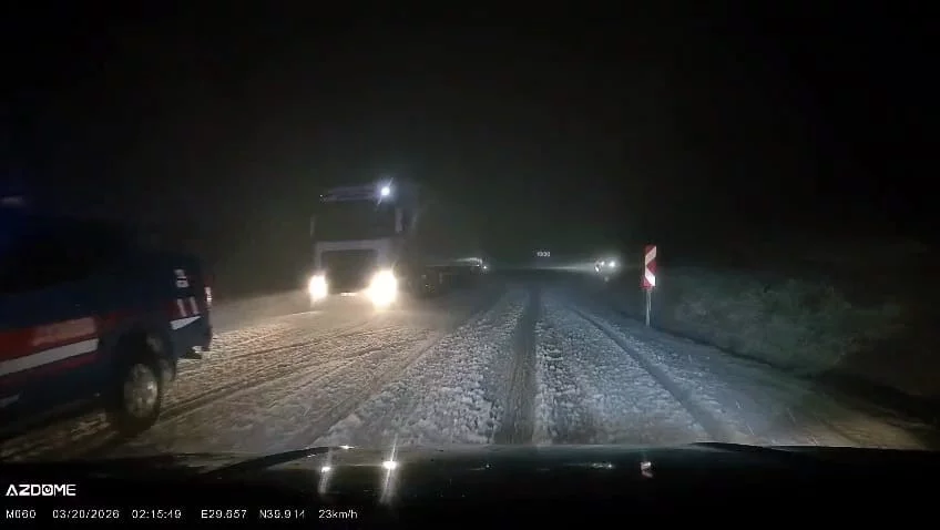 BURSA, 20 Mart 2026 Cuma, 00:08Akşam saatlerinde başlayan kar yağışı kısa sürede etkisini artırırken, yolun karla kaplanması ulaşımı olumsuz etkiledi. Özellikle yaz lastiğiyle yola çıkan bazı sürücüler, kayganlaşan zeminde ilerlemekte güçlük çekti. Bazı araçlar yolda kalırken, trafikte zaman zaman aksamalar yaşandı.