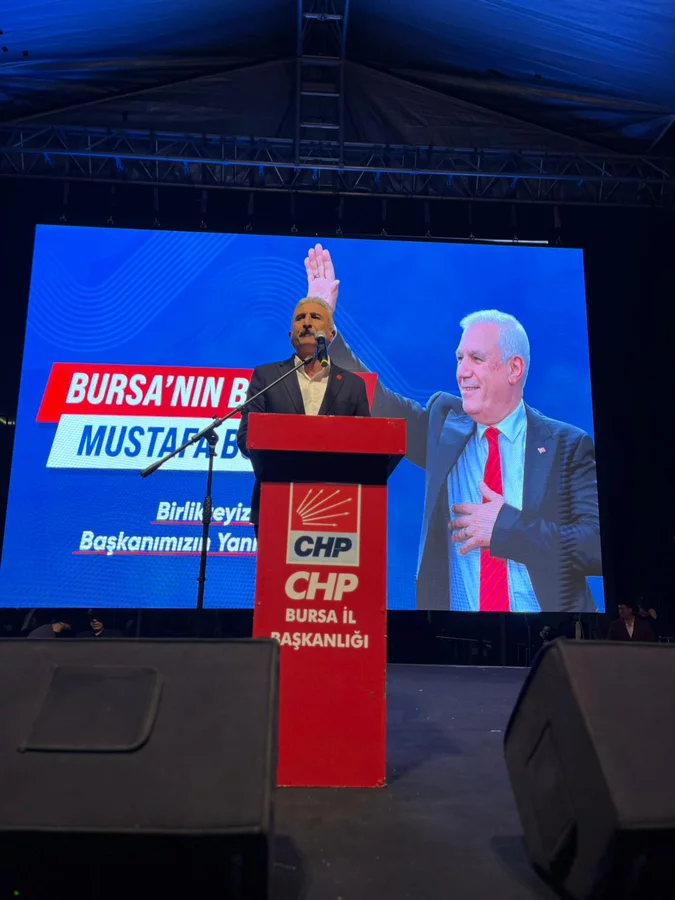 Cumhuriyet Halk Partisi Bursa Milletvekili Hasan Öztürk, "Hiç kimse kendini Bursa'nın üzerinde görmesin. Hiç kimse kendini Türk milletinin üzerinde görmesin, milletin iradesinin üzerinde görmesin. Millet eninde sonunda galip gelecektir. "Korkma" diye başlayan bir İstiklal Marşı'nı yazan bu millet, sarayın iradesiyle teslim olmaz. Savaş meydanlarında bu ülkeyi ve Cumhuriyeti kuran Gazi Mustafa Kemal Atatürk'ün evlatlarıyız; biz, askerleriyiz. O gün teslim olmayan irade, o gün meydanlarda olan bu millete Gazi Mustafa Kemal Atatürk tarafından Cumhuriyetle verilmiştir. Cumhuriyetimize sahip çıkacağız, demokrasimize sahip çıkacağız, irademize sahip çıkacağız. Mustafa Başkanımıza, Ekrem Başkanımıza ve cumhurbaşkanı adayımıza; aslında geleceğimize, çocuklarımızın umuduna, ülkemize ve Cumhuriyetimize sahip çıkacağız." dedi.