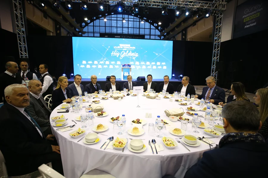 "300'ün üzerinde yükleme rampasının olduğu, 2 bin tır park kapasitesi olan ve kara yolu ile otobana direkt bağlanan önemli lokasyonda. Otoban bağlantı kavşağı bitti ve hizmete açıldı. Bununla birlikte tesisin hemen yanında TEKNOSAB tır park alanı, nakliye firmalarının ve sosyal donatı alanlarının olduğu önemli bir merkezi de hayata geçiriyoruz. Yüksek teknoloji ve yapay zeka yönetiminin merkezi olduğu önemli dijital alt yapı gücüyle bu merkezin işletimi olacak."