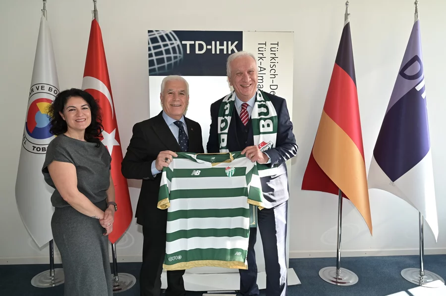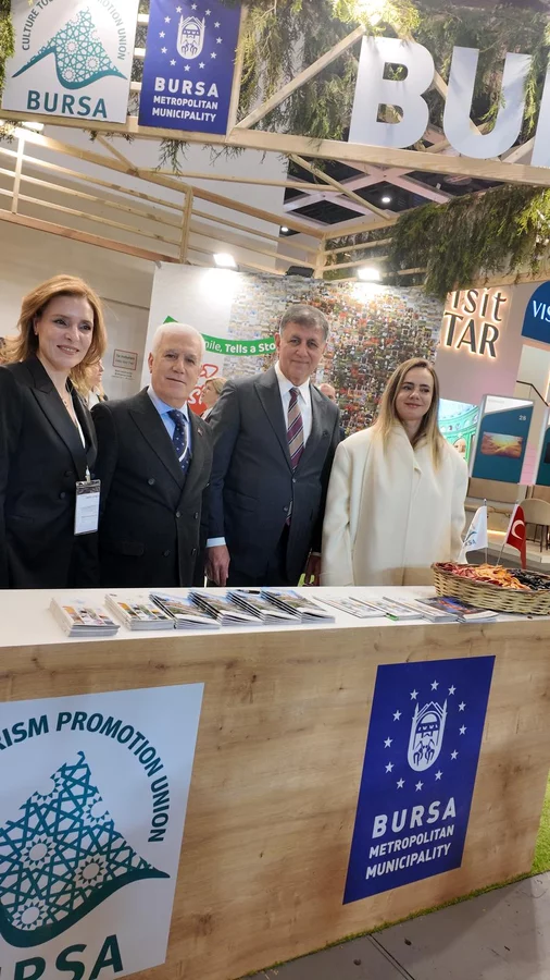 ITB Berlin 2026'da Bursa Büyükşehir Belediyesi'nin standı da büyük ilgi gördü. 'Her Gülümseme Bir Hikâye Anlatır' kampanyasıyla organizasyonda yer alan Bursa Büyükşehir Belediye Başkanı Mustafa Bozbey'in liderliğindeki heyet, 3-5 Mart tarihleri arasında yerli ve yabancı sektör temsilcileriyle bir araya gelerek Bursa'nın turizm potansiyelini anlattı. Fuardaki diğer firmaların stantlarını da gezen Başkan Mustafa Bozbey, birebir görüşmeler gerçekleştirerek yapılabilecek iş birliklerini konuştu. Türk-Alman Ticaret ve Sanayi Odası Genel Sekreteri Okan Özoğul'u ve Türk-Alman İşverenler Derneği Başkanı Remzi Kaplan'ı da ziyaret eden Başkan Mustafa Bozbey, yapılabilecek iş birlikleri hakkında fikir alışverişinde bulunurken Bursaspor forması ve atkısı hediye etti.