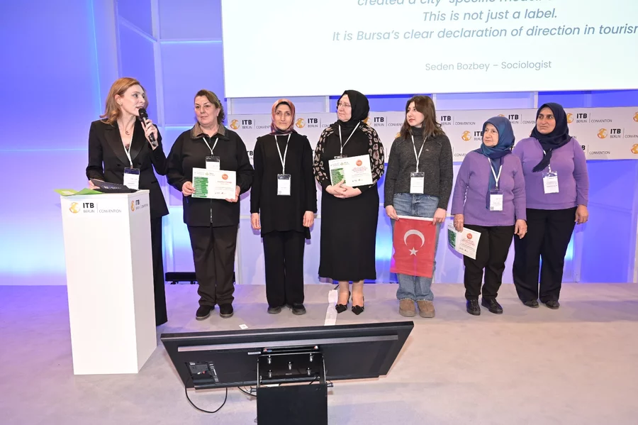 Yeşil Bursa Sürdürülebilirlik Sertifikası sürecinin öncüsü Seden Bozbey, törende yaptığı konuşmada, turizmin artık yalnızca ekonomik büyümeyle değil, sosyal ve çevresel etkisiyle de ölçüldüğünü vurguladı. Bursa'nın bu dönüşümü izleyen değil, yön veren bir şehir olduğunu ifade eden Seden Bozbey, "Kente özgü olarak geliştirilen Green Bursa modeli sadece bir sertifika sistemi değil. Yerel üretimi güçlendiren, kadın emeğini görünür kılan ve kültürel mirası koruyan bütüncül bir sürdürülebilirlik yaklaşımıdır. Süreç özellikle kadın dernekleri ve kooperatiflerle başlatıldı. 'Sürdürülebilirlik sahada başlar' mesajı paylaşıldı. Kadın örgütlerinin üretim, dayanışma ve yerel kalkınma temelli çalışmaları, Bursa'nın sürdürülebilir turizm dönüşümünün lokomotifidir. Uluslararası turizm profesyonellerini Bursa'ya davet ediyoruz. Turizmin geleceği, iş birliği, etik değerler ve kapsayıcılıkla inşa edilecektir. Bursa, bu dönüşüme hazır ve bu değişime öncülük etmeye kararlı" dedi.