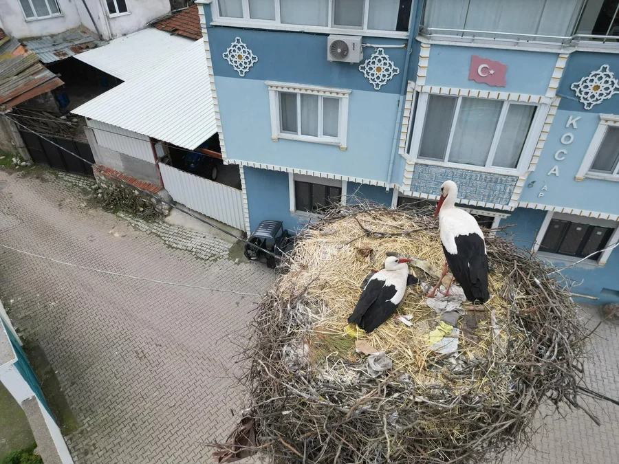 Yaren Leylek'in ayrıca yalnız olmadığı, eşinin de mahalledeki yuvada bulunduğu ve leylek çiftinin birlikte görüntülendiği belirtildi.
