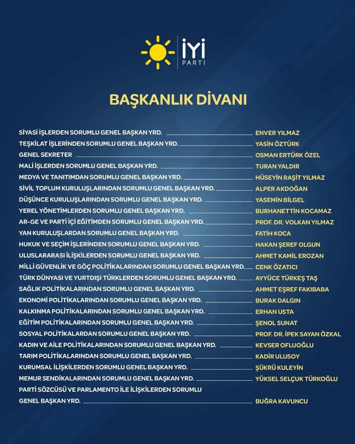 İYİ PARTİ BAŞKANLIK DİVANI GÖREV DAĞILIMI