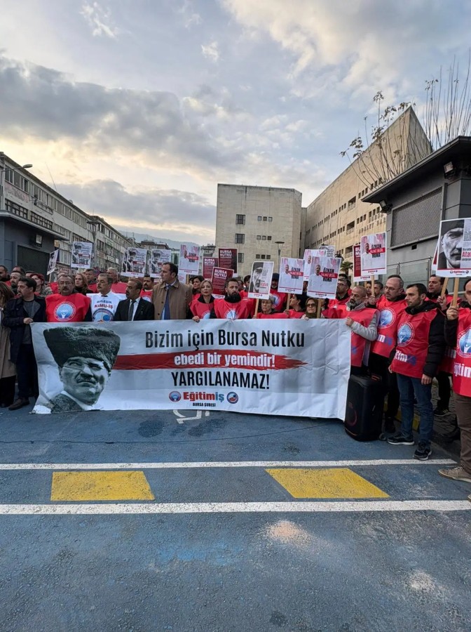 BURSA, 05 Aralık 2025 Cuma, 14:1819 Mart'ta İBB'ye yönelik operasyon sonrası Mustafa Kemal Atatürk'ün Bursa Nutku'dan alıntı yaptığı paylaşım nedeniyle yargılanan Laiklik Meclisi Sözcüsü, Eğitim-İş Bursa Şube Başkanı Özkan Rona, bugün üçüncü kez hakim karşısına çıktı.