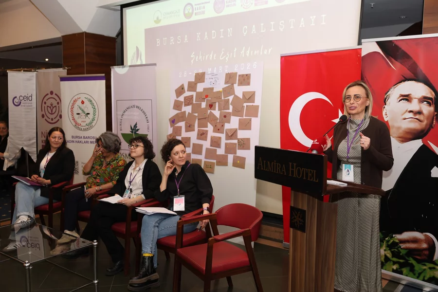 BURSA, 29 Mart 2026 Pazar, 19:29Osmangazi Belediyesi, kadınların toplumsal yaşamın her alanında güçlenmesini önceleyen vizyoner yaklaşımıyla önemli bir organizasyona daha ev sahipliği yaptı. Kadınlara yönelik sosyal, ekonomik ve kültürel projeleriyle örnek olan Osmangazi Belediyesi, eşitlikçi ve kapsayıcı bir kent hedefi doğrultusunda Osmangazi Kent Konseyi Kadın Meclisi, Bursa Kent Konseyi Kadın Meclisi, Nilüfer Kent Konseyi Kadın Meclisi, Bursa Barosu Kadın Hakları Merkezi ve YEİP iş birliğiyle "Bursa Kadın Çalıştayı: Şehirde Eşit Adımlar" programını gerçekleştirdi. İki gün boyunca süren çalıştay, 20 moderatör, 20 raportör, 110 katılımcı ve organizasyon ekibinin de dahil olduğu yaklaşık 200 kişilik geniş bir buluşmayı sağladı. Kadınların kent yaşamındaki haklarını, ihtiyaçlarını ve taleplerini görünür kılan çalıştay; eşitlikçi ve kapsayıcı yerel politikaların inşasına güçlü bir zemin sunan kolektif bir üretim süreci olarak dikkat çekti. Bursa Büyükşehir Belediye Başkanı Mustafa Bozbey ve Osmangazi Belediye Başkan Yardımcısı Mutlu Esendemir'in de katıldığı sonuç oturumunda somut, uygulanabilir ve dönüştürücü çözüm önerileri geliştirilerek paylaşıldı.