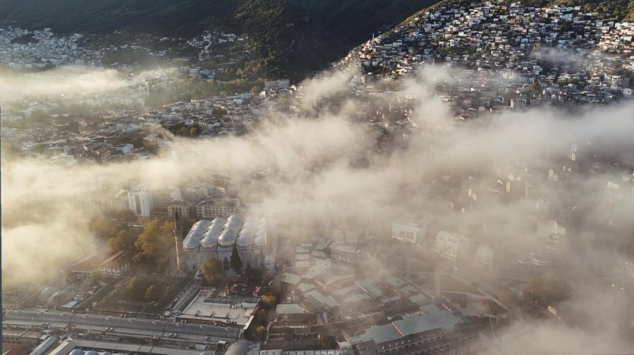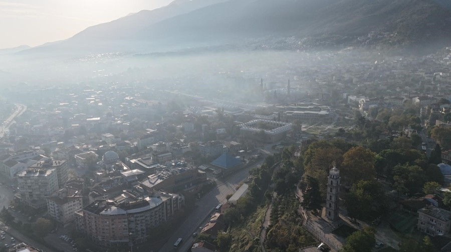 Dün gece Uludağ yolunda etkili olan sis tabakası sabah saatlerinde şehrin üzerini kapladı.