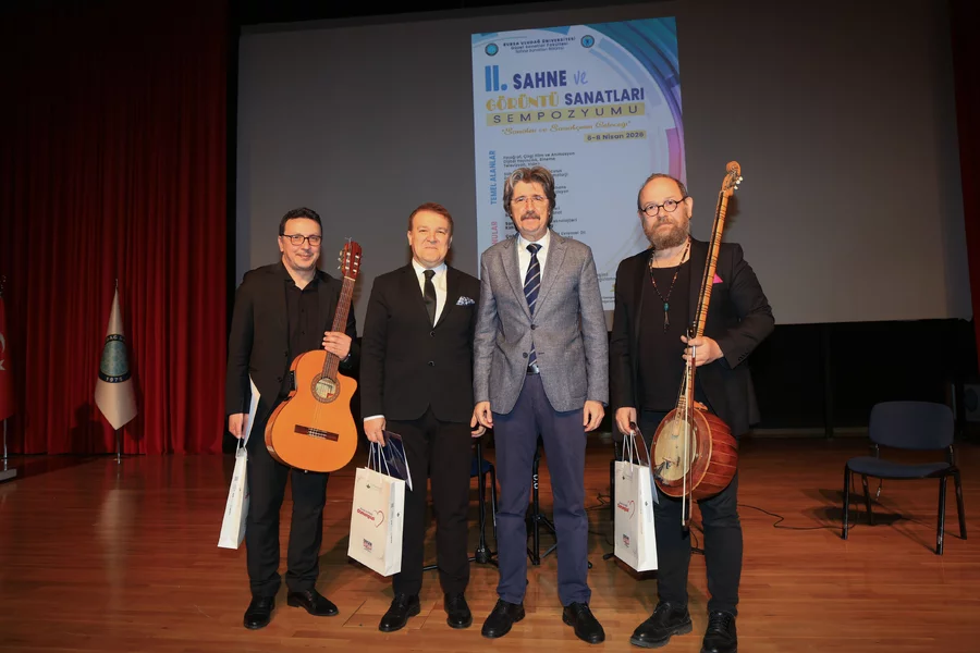Program kapsamında düzenlenen törende konuşan BUÜ Rektörü ve Sempozyum Onursal Başkanı Prof. Dr. Ferudun Yılmaz, araştırma üniversiteleri arasındaki yarışın genellikle sosyal bilimler ve sanat alanındaki faaliyetleri ihmal eden bir görüntü sergilediğini ifade etti. Uluslararası sıralama kriterlerinin sanat alanındaki birikimi tam olarak yansıtamamasının, bu alanlarda emek veren akademisyen ve öğrencilerde bir değersizlik hissi sebep olmaması gerektiğini vurgulayan Prof. Dr. Ferudun Yılmaz, üniversite kurumunun insanın tüm zenginliğini bünyesinde barındıran bir yapı olduğunu belirtti. Bilimsel ve teknolojik ilerlemenin sanatın doğasını dönüştürdüğüne dikkat çeken Yılmaz, yapay zeka ve dijital teknolojilerin sunduğu imkanların yanı sıra insani varoluş açısından barındırdığı kaygılara da değindi. Konuşmasının sonunda sanatın insan kalabilmenin yegane yolu olduğunu hatırlatan Rektör Yılmaz, dünyanın distopyaya savrulduğu bir dönemde umudun ancak sanatsal faaliyetlerden neşet edebileceğini ve üniversite olarak buna katkı sunmaya devam edeceklerini önemle vurguladı.