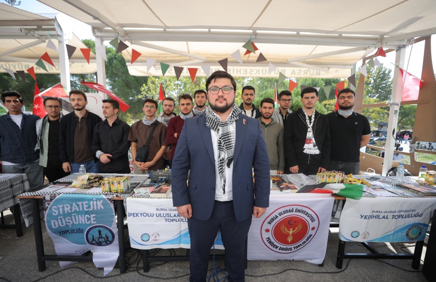 Bu arada stantlarda üniversite öğrencilerine bilgilendirme broşürleri, Filistin'i simgeleyen kefiyeler (şal, poşu) ve Filistin bayrakları dağıtıldı.