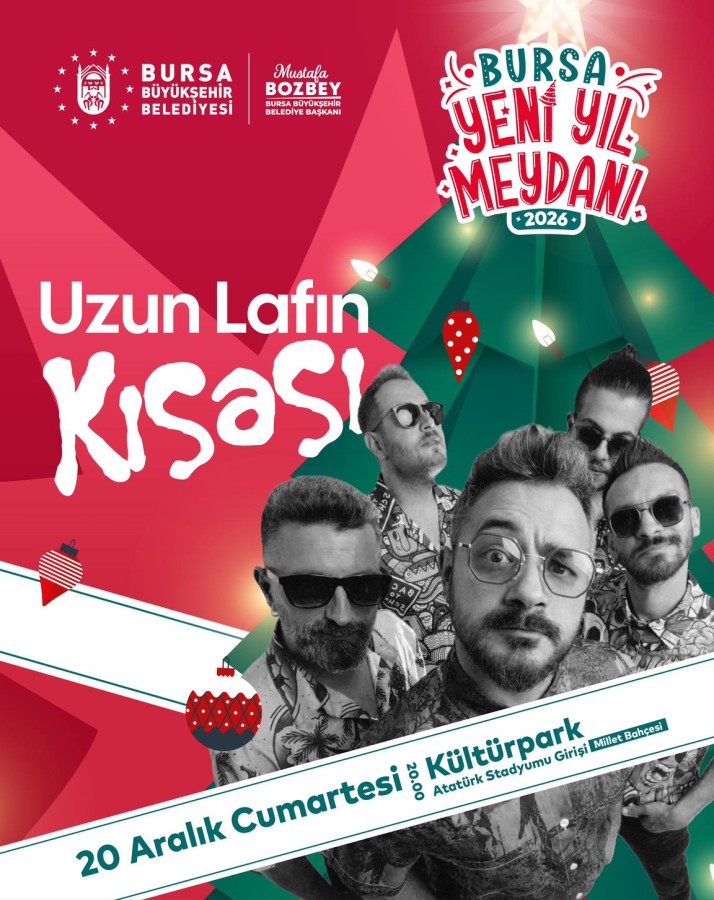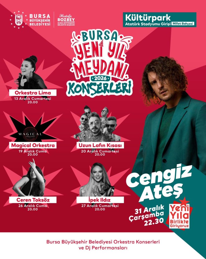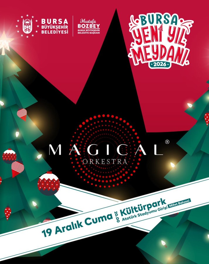BURSA, 12 Aralık 2025 Cuma, 10:21Vatandaşların huzur ve güven içerisinde 2026'yı karşılayabilmeleri için Bursa Kültür AŞ ve ilgili birimleriyle hazırlıklarını sürdüren Bursa Büyükşehir Belediyesi, yeni yılın büyük bir coşkuyla karşılanması için Eski Atatürk Stadyumu alanında 'Bursa Yeni Yıl Meydanı'nı oluşturdu.