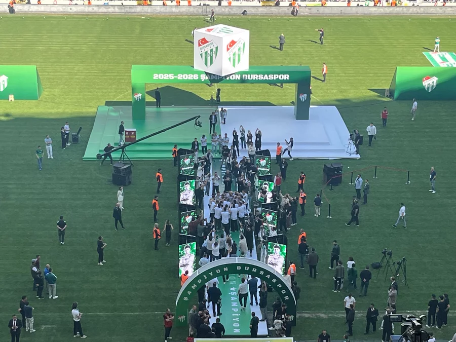 TFF 2. Lig Kırmızı Grup'ta 2025-2026 sezonunu şampiyon tamamlayan Bursaspor için Atatürk Matlı Stadyumu'nda 3 büyükleri aratmayan bir kutlama programı gerçekleştirildi.