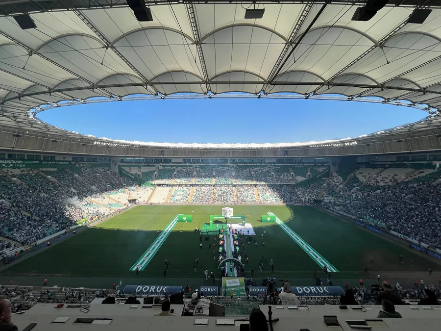 Yeşil-beyazlı taraftarlar, sabahın erken saatlerinden itibaren stadyum çevresinde toplanarak takımlarının başarısını coşkulu tezahüratlarla kutladı.
