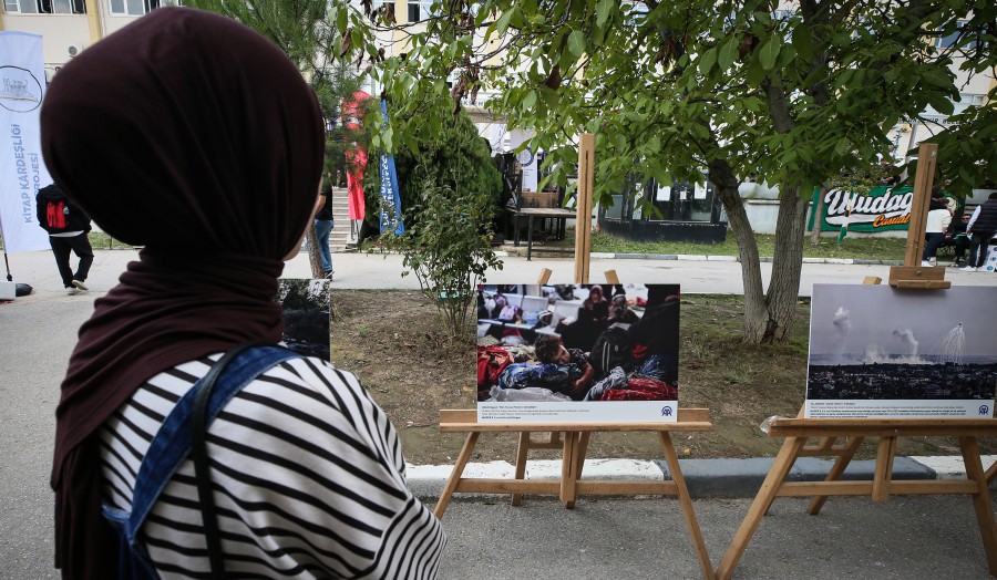 Üniversite olarak, oryantasyon haftası faaliyetleri kapsamında Gazze'de yaşanan soykırıma dikkati çekmek için üzerlerine düşen görevi yapmaya çalıştıklarını belirten Yılmaz, "Bütün öğrenci topluluklarımız bu konuda büyük duyarlılık gösteriyor. Bu oryantasyon günlerinde bir Gazze Sokağı oluşturuldu. Anadolu Ajansının da burada hem farkındalık hem tarihe kayıt düşmek üzere fotoğraf sergisi mevcut. Oryantasyon için gelen öğrencilerimizin bu sergiyi gezerek farkındalığına bir nebze olsun katkı yapma gayreti gösteriyoruz." ifadelerini kullandı.