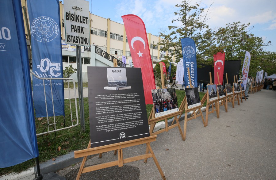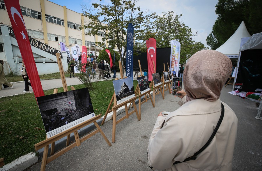 BURSA, 15 Ekim 2025 Çarşamba, 14:37BUÜ'de oryantasyon haftası kapsamında Görükle Yerleşkesi'ndeki Mediko binası önünde oluşturulan "Gazze Sokağı"nda izlenime sunulan "Filistin-Kanıt Sergisi"nde, AA muhabirlerinin bölgede çektiği 40 fotoğraf yer alıyor.