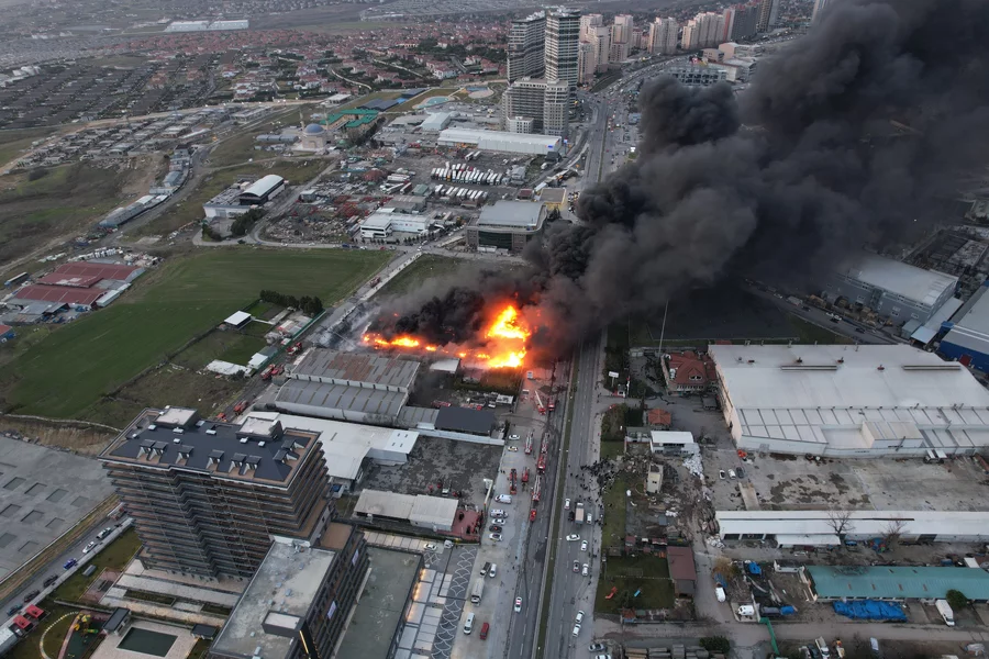 GÜNDEM, 25 Ocak 2026 Pazar, 18:53İstanbul Büyükçekmece'de plastik kasa üretimi yapan fabrikada yangın çıktı. İtfaiye ekiplerinin müdahalesi devam ederken, yangın dronla görüntülendi.
