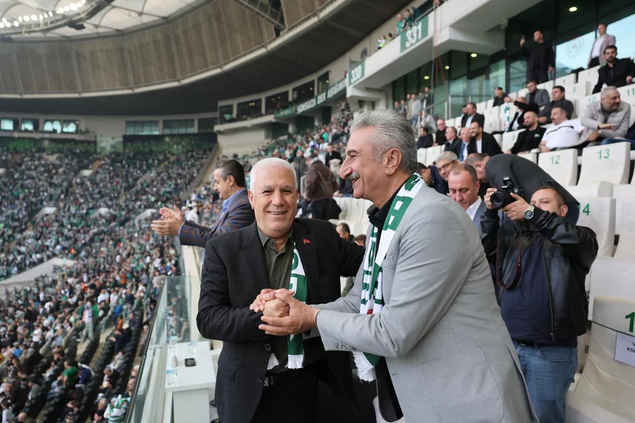 Bursa'nın, Bursaspor etrafında kenetlenmesinde büyük bir sorumluluk üstlenen, her koşulda kulübümüzün yanında duran, büyük destek veren seçilmiş Bursa Büyükşehir Belediye Başkanımız Mustafa Bozbey'e hemşehrilerimiz adına ayrıca teşekkür ediyorum.