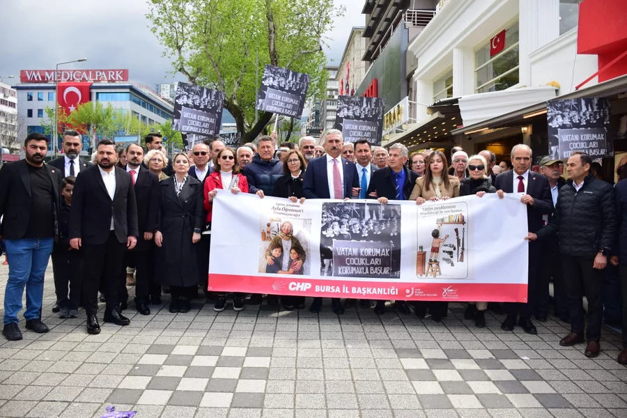 BURSA, 23 Nisan 2026 Perşembe, 18:00CHP Bursa İl Örgütü, 23 Nisan Ulusal Egemenlik ve Çocuk Bayramı'nda CHP İl Başkanı Nihat Yeşiltaş, İl Kadın Kolları Başkanı Nigar Bölüker, İl Gençlik Kolları Başkanı Berkcan Bora, Milletvekili Orhan Sarıbal, Parti Meclisi Üyesi Canan Taşer, Kadın Kolları MYK Üyesi Fatma Özgür'ün de aralarında olduğu çok sayıda yurttaş ile Bursa İl Milli Eğitim Müdürlüğü önüne yürüdü. Yürüyüş okul saldırılarının ardından "güvenli okul" talebiyle düzenlendi.
