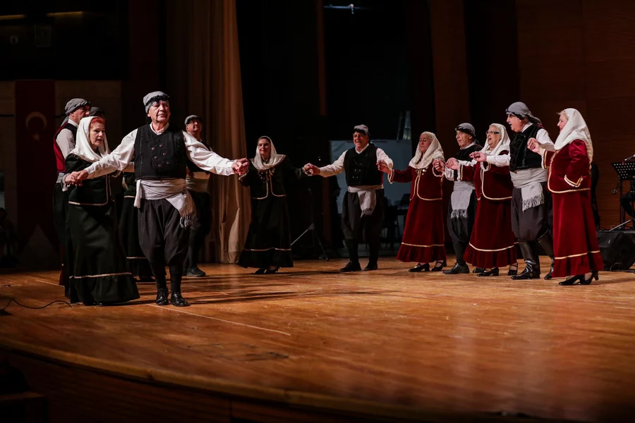 Anadolu ve Rumeli'nin ortak hafızasında yer alan mübadele ezgilerinin ve halk oyunlarının sahneye taşıdığı gecede, Ege'nin iki yakasında yüzyıllar boyunca şekillenen türküler, danslar ve ritimler izleyicilerin beğenisine sunuldu.