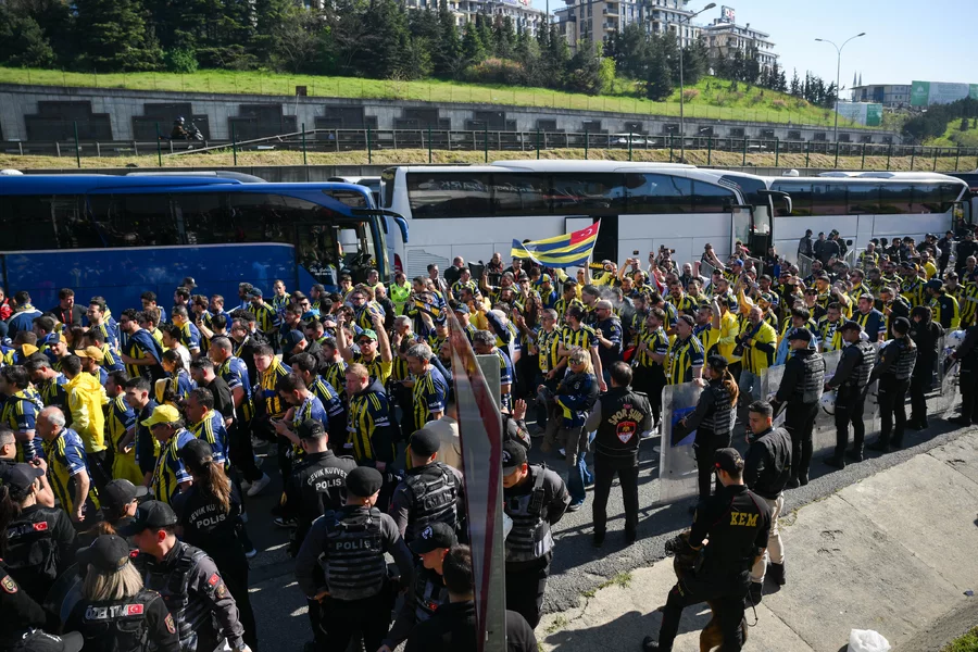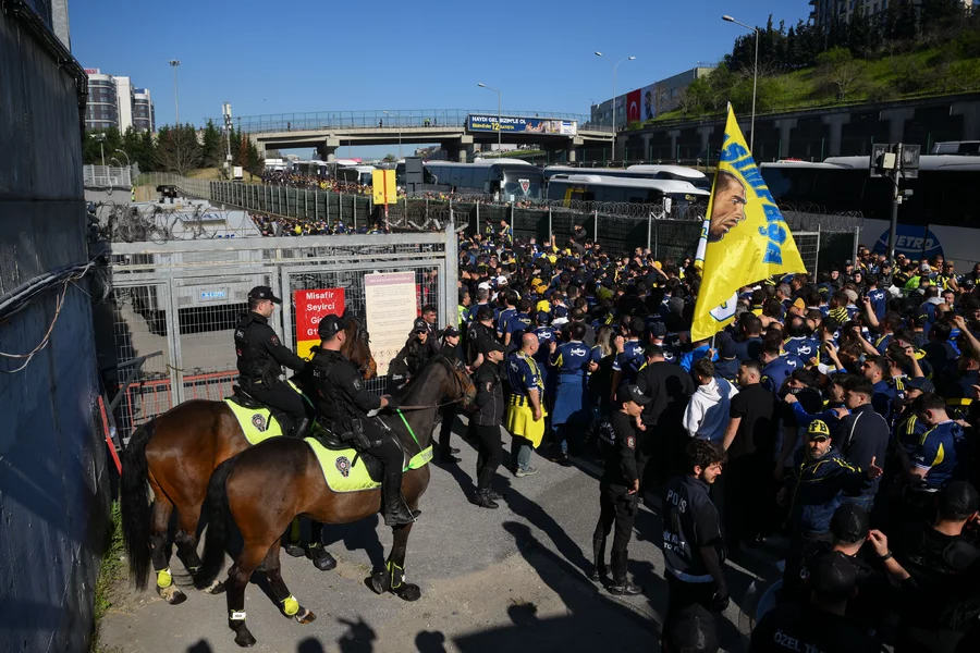 SPOR, 26 Nisan 2026 Pazar, 17:18Trendyol Süper Lig'in 31. haftasında Galatasaray ile Fenerbahçe saat 20.00'de RAMS Park'ta karşı karşıya gelecek. Bu zorlu müsabakayı İl Spor Güvenlik Kurulu kararı gereği 2 bin 488 sarı-lacivertli taraftar da stattan takip edecek. Bugün saat 15.00'te Fenerbahçe Şükrü Saracoğlu Spor Kompleksi önünde toplanan taraftarlar bilet kontrolünün ardından otobüslere bindi. Fenerbahçe yönetimi de deplasmanda takımlarını takip edecek taraftarlara jest yaparak çubuklu forma hediye etti.