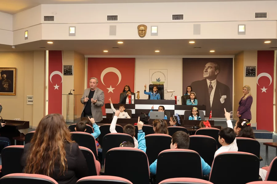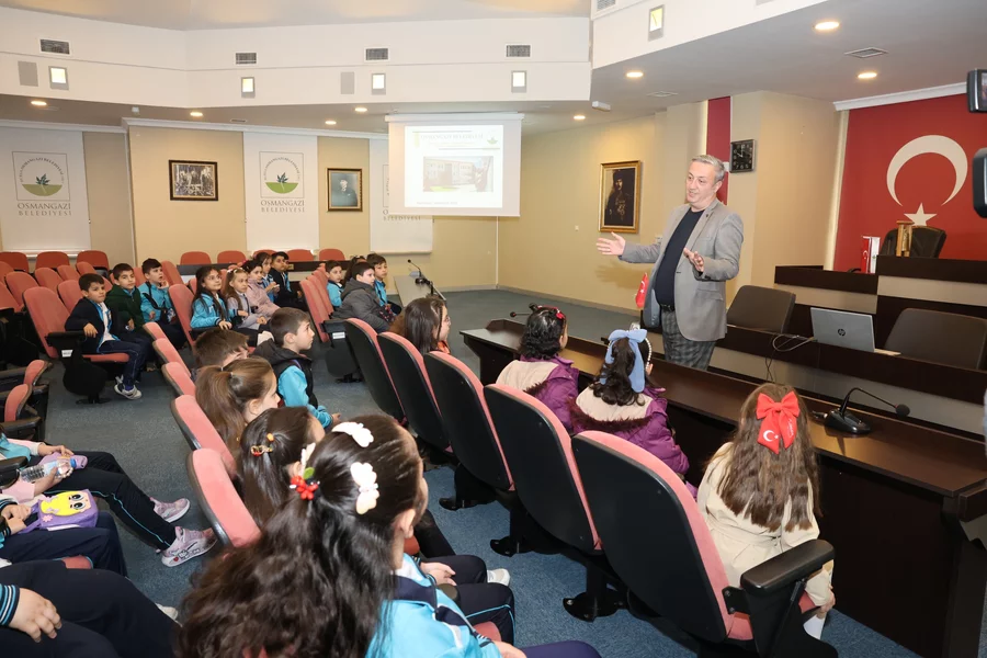 BURSA, 14 Nisan 2026 Salı, 11:22Osmangazi Belediyesi, çocuklara ve eğitime verdiği önemi bir kez daha ortaya koyan anlamlı bir etkinliğe imza attı. Her ay ilçeye dair önemli kararların alındığı Osmangazi Belediyesi Meclis Salonu, bu kez ilköğretim öğrencilerini ağırlayarak adeta geleceğin yöneticilerine ev sahipliği yaptı. "Yerel Yönetimler" dersleri kapsamında Osmangazi Belediyesi'ni ziyaret eden 3. sınıf öğrencileri, belediyenin işleyişini yerinde ve uygulamalı olarak öğrenme fırsatı buldu.