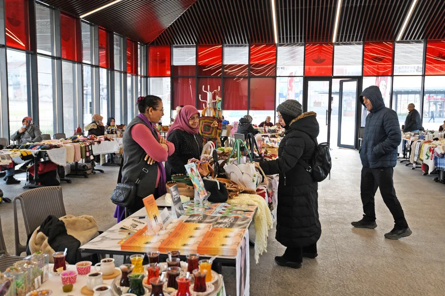 Takıdan tekstile, ev dekorasyonundan yöresel lezzetlere kadar geniş bir ürün yelpazesinin yer aldığı stantlar, meydanı adeta renkli bir üretim sokağına dönüştürdü.