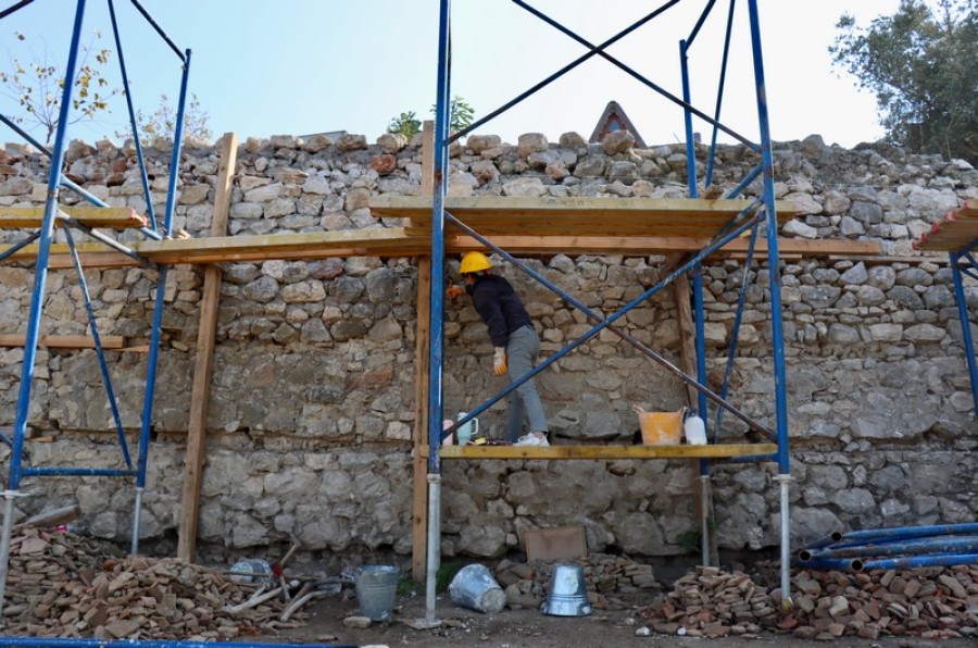 "Yaklaşık 3 kamyon çöp atıldı. Dolayısıyla arka taraftaki teras duvarının mukavemeti azaldığı için alanda ciddi bir basit onarım ve konservasyon çalışması gerekiyordu. Bu konuda da gerekli girişimlerde bulunduk, hem bu teras duvarını hem de kemer formlu yapının olduğu kısımdaki zayıf noktaları tahkim etmeye çalıştık. Bunun için gerekli yerlerde dolgular kullandık, bazı yerlerde de metal dikey taşıyıcı unsurlar koyarak, yapının geçici olarak basit onarımını gerçekleştirdik. Aralarda derzler tamamlanıyor. Çalışmalarımız devam ediyor."