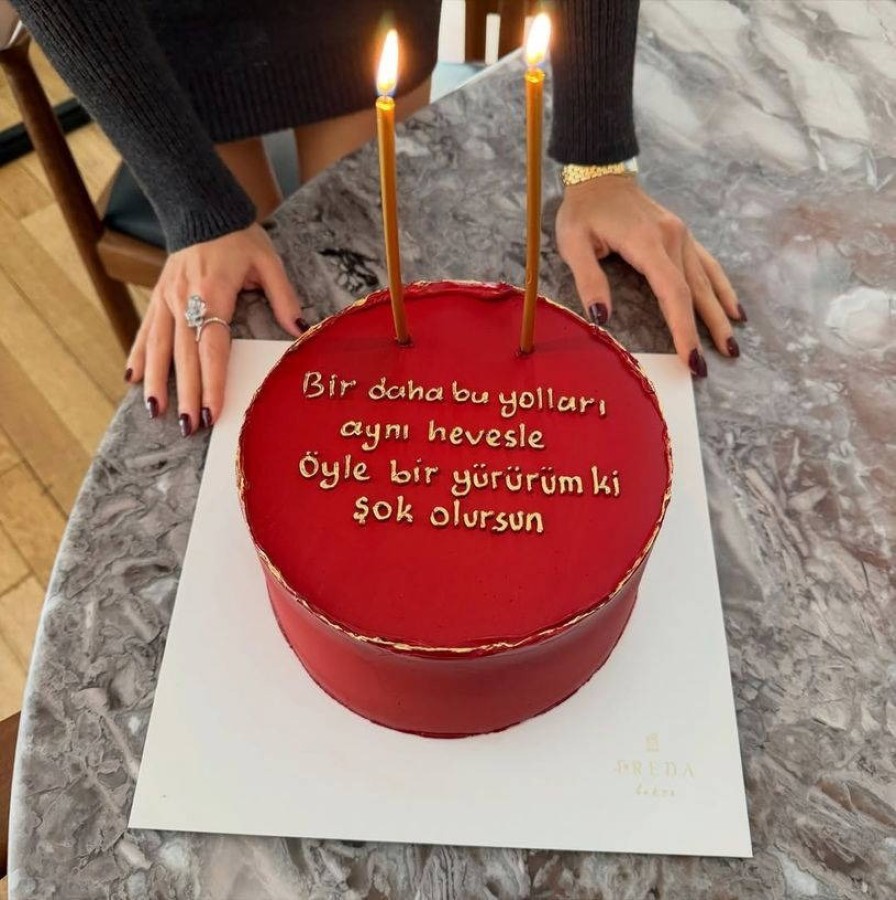 Hande Erçel'in doğum günü paylaşımları arasında yer alan pastasının üzerindeki "Bir daha bu yolları aynı hevesle öyle bir yürürüm ki şok olursun" yazısı sosyal medyada gündem oldu. Kullanıcılar, bu mesajın eski sevgilisi Hakan Sabancı'ya gönderilmiş bir ima olabileceğini öne sürdü.