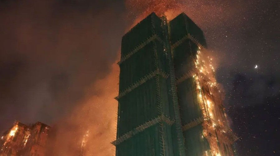 Binanın dış cephesinin yenilenmesi amacıyla bınanın dışına kurulan bambu iskeleler nedeniyle yangının hızla yayıldığı aktarıldı.
