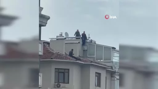 İstanbul'da çatıya çıkan şahıs etrafa kiremit ve şişe attı, polisin 1 saatlik çalışmasıyla indirildi