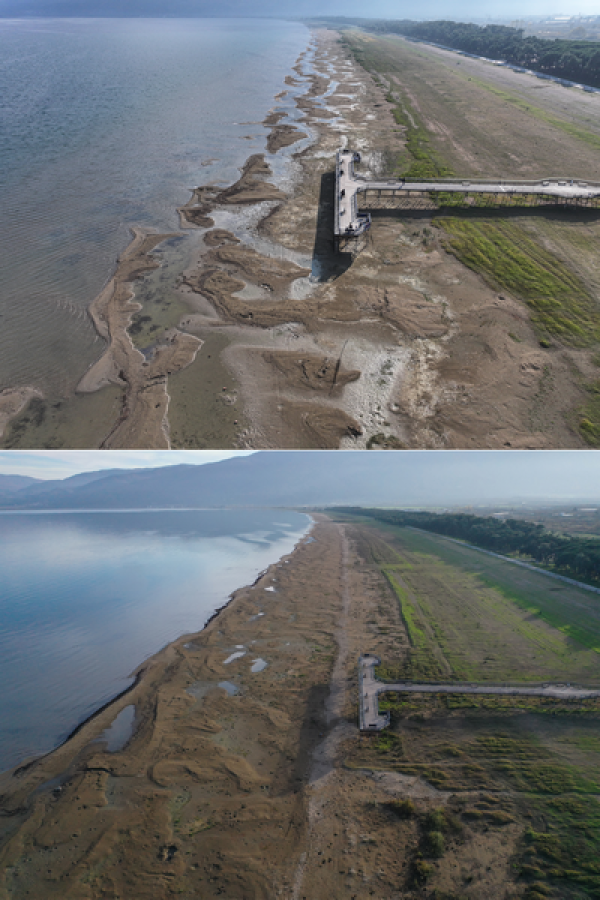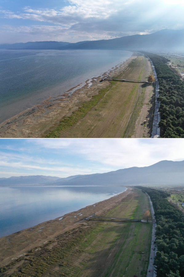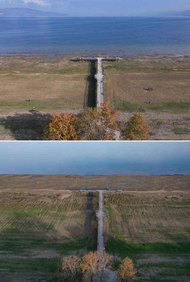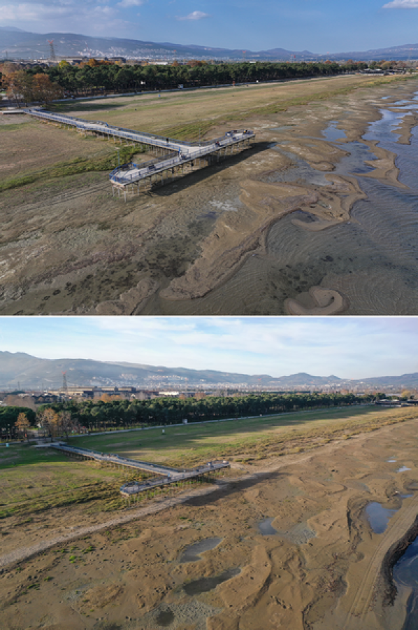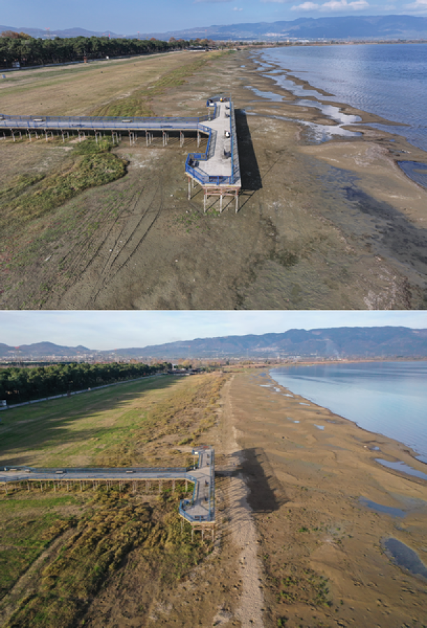 Önceki yıllarda gemilerin yanaştığı Orhangazi İskelesi'nin geçen yıl kasım ayı ile şimdiki fotoğrafları su seviyesindeki değişimi gözler önüne seriyor.
