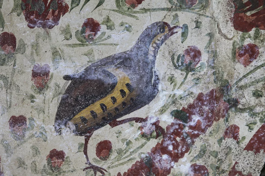 Meriç, güney duvarının tahrip olduğunu, bu duvardaki tasvirlerden sadece bir tavus kuşu kanadının ucunun tespit edilebildiğini aktararak, şöyle devam etti:
