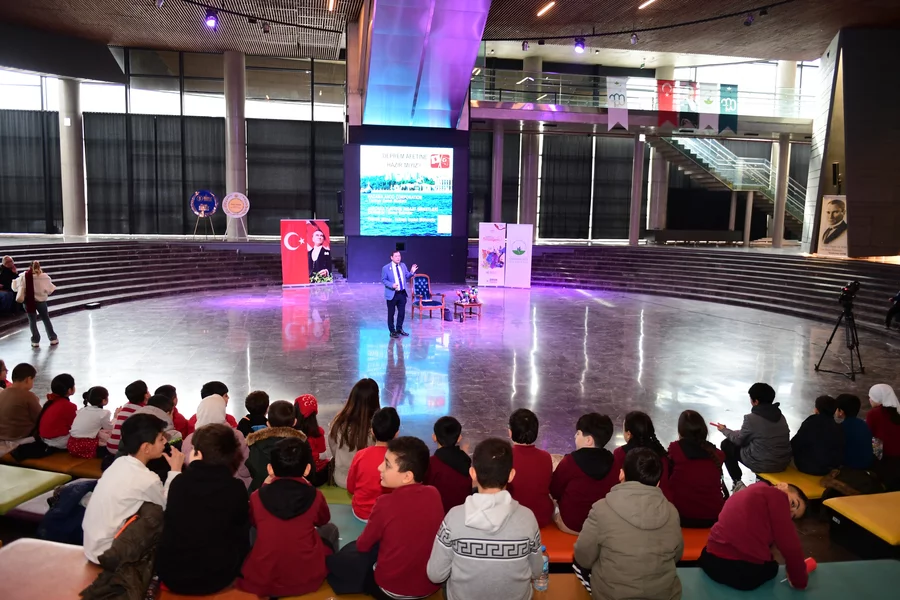 Deprem Uzmanı ve İnşaat Mühendisi Yoshinori Moriwaki'nin katılımıyla gerçekleşen Panorama 1326 Bursa Fetih Müzesi'ndeki söyleşiye çocuklar yoğun ilgi gösterdi.